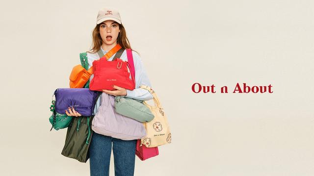 『Out and about(出かけよう!)』を由来とする「Out n About(アウト ナバウト)」は、豊富なカラーバリエーションが魅力のバッグを中心に、インテリアやリラックスウェアを取り揃え、旅や日常のお出かけをより楽しく彩ります。